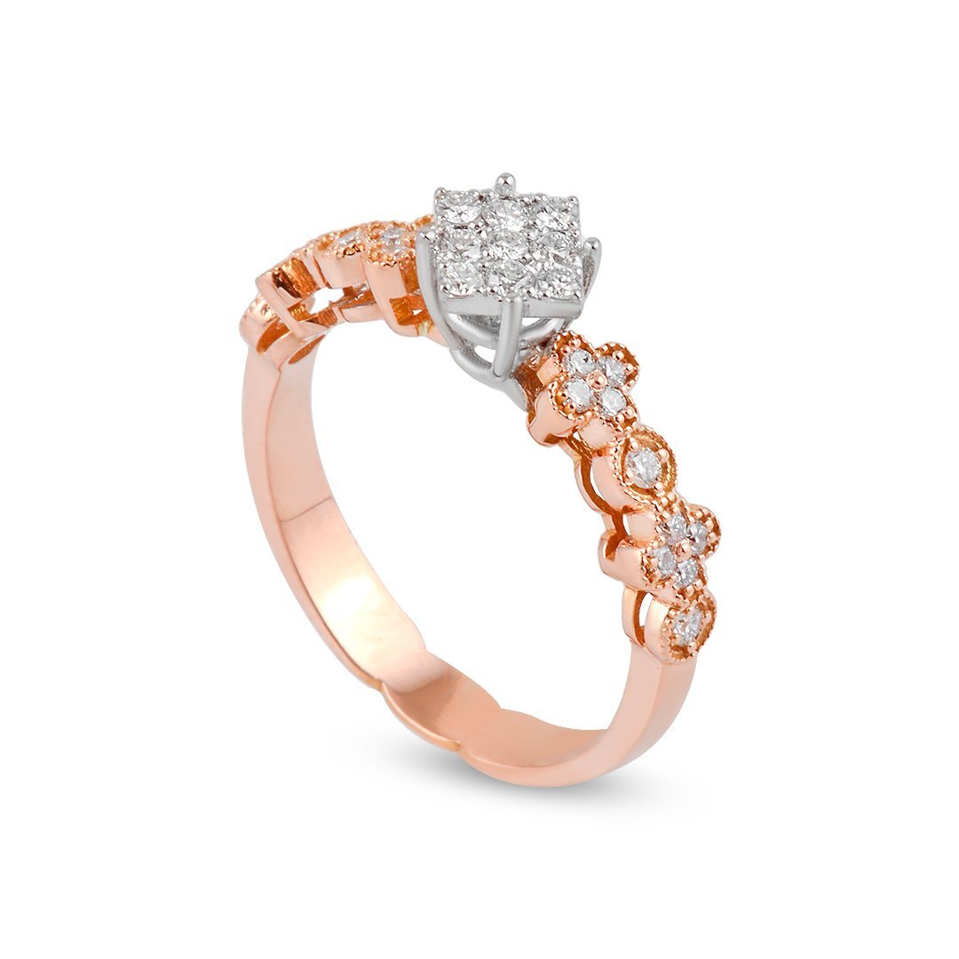 This 18k rose and white gold diamond ring offers timeless beauty and subtle luxury. Its balanced design shines in any setting. Wear it alone or layer it with other pieces. Either way, it makes a quiet statement. It suits both modern and classic tastes. Transition from office hours to evening events with ease. The ring’s refined silhouette enhances every outfit. With its elegant contrast and sparkling diamonds, it becomes a signature piece. Choose this diamond solitaire ring as a symbol of enduring style and grace.