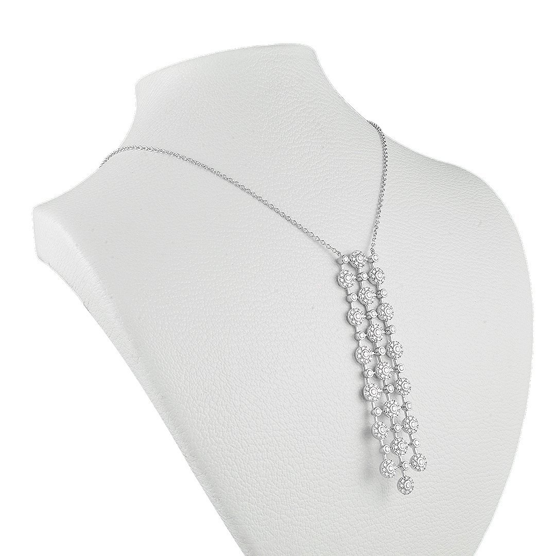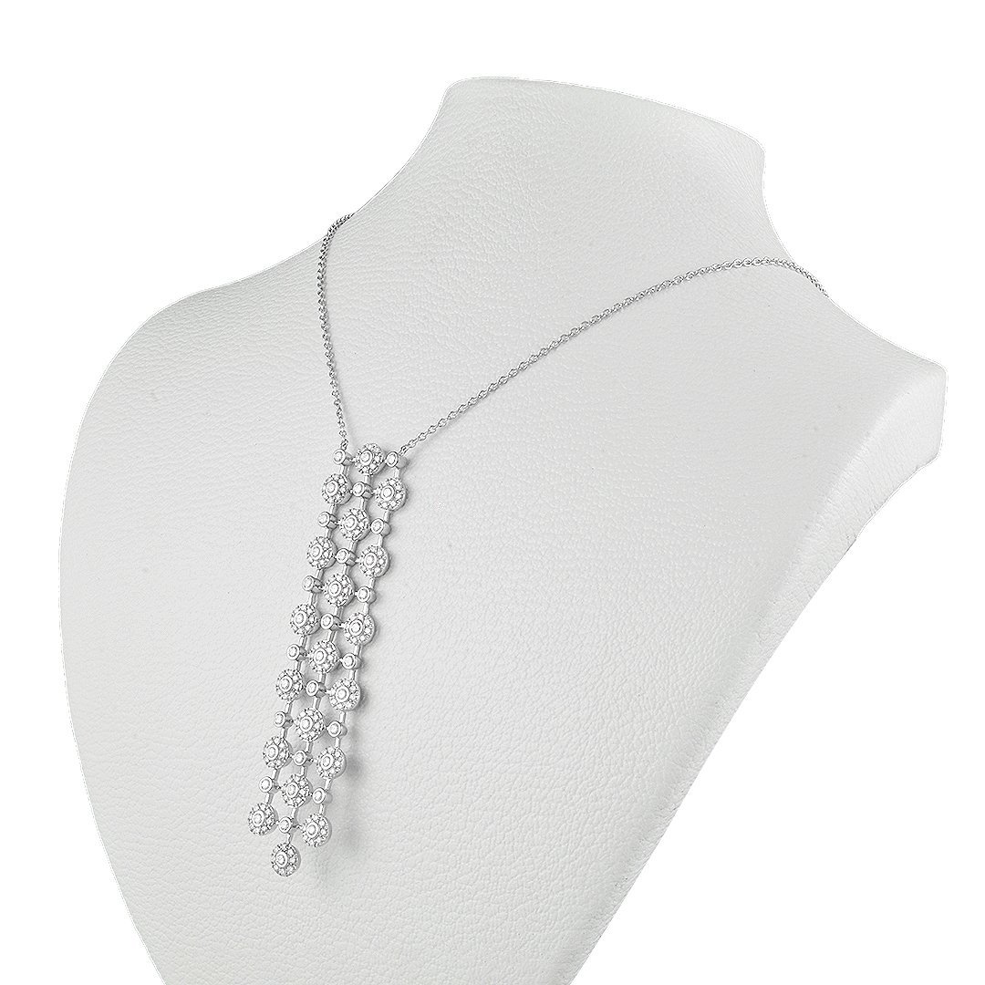 Introducing the 18K White Gold and Diamond Necklace, a masterpiece that seamlessly combines luxury and sophistication. This exquisite necklace features a stunning arrangement of 189 round brilliant diamonds, totaling 2.63 carats, set in high-quality 18K white gold. The diamonds exhibit exceptional clarity and G color grade, ensuring a brilliant sparkle that enhances any ensemble.