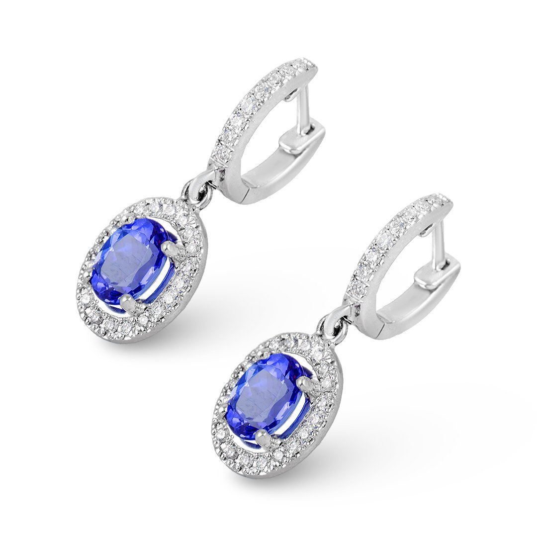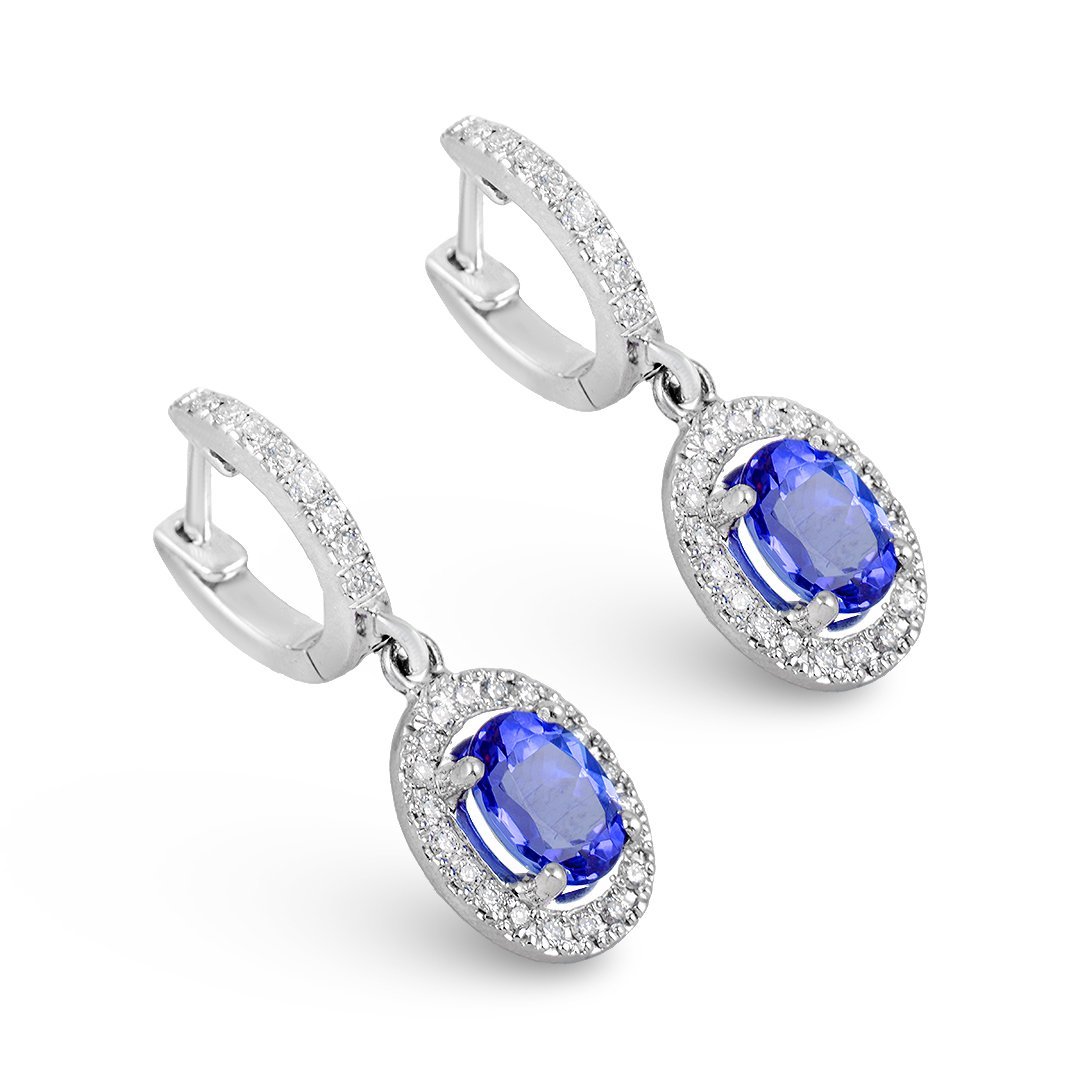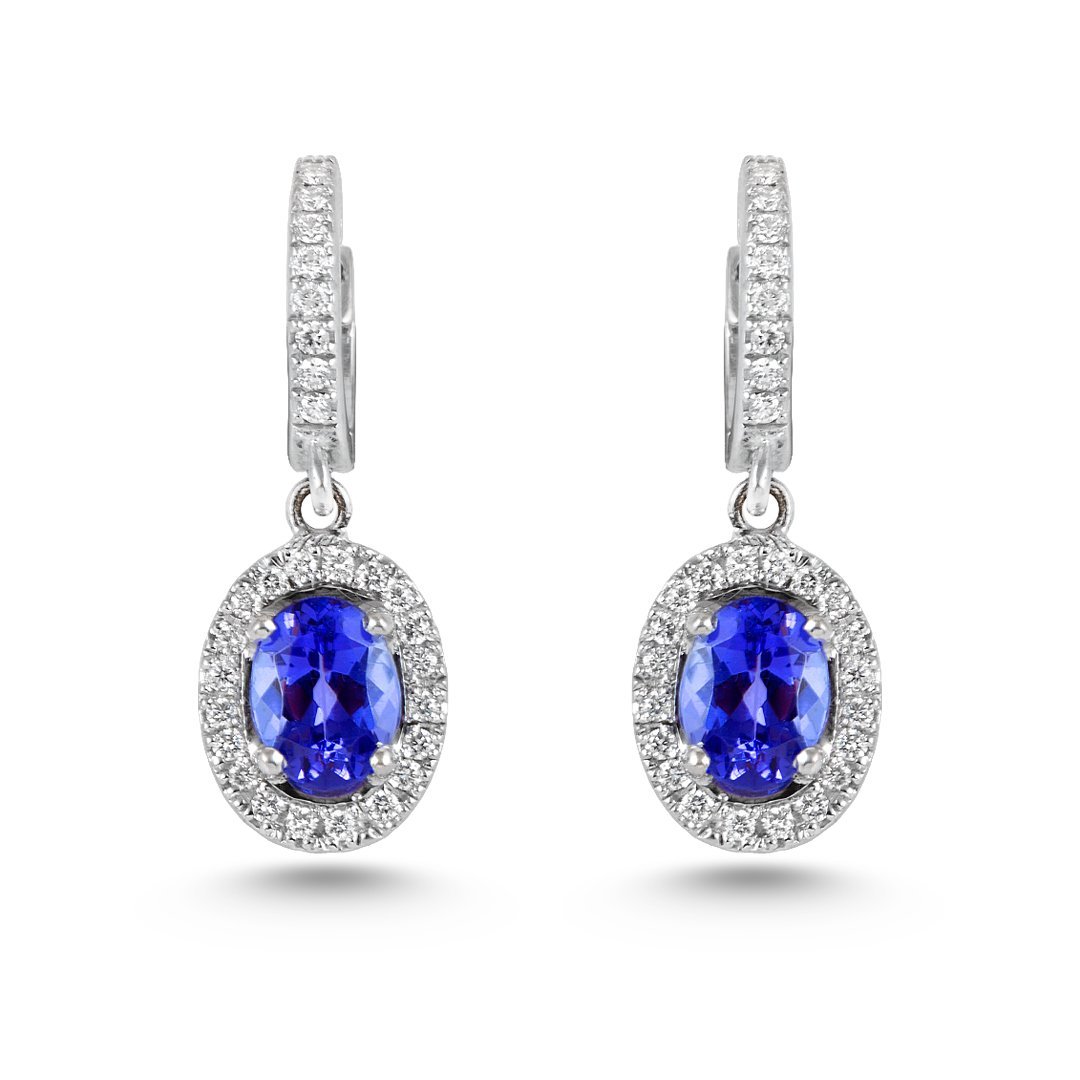 Each earring is set in 18K white gold, providing a luxurious backdrop that enhances the sparkle of the diamonds and the rich tones of the tanzanite gemstones. The 18K white gold not only adds to the aesthetic appeal but also ensures durability and longevity.