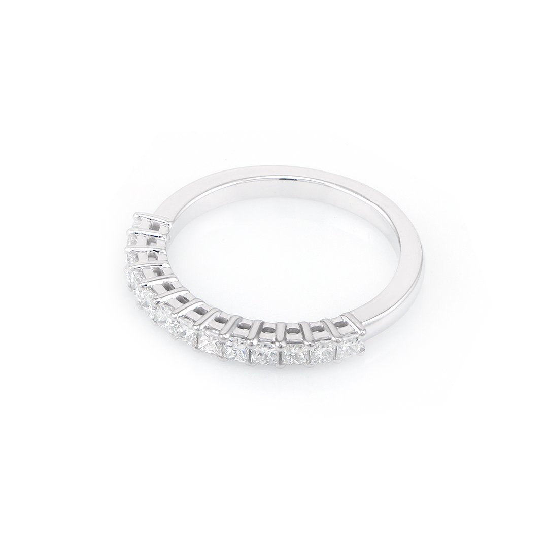 18k White Gold Diamond Band with 13 Princess Cut Diamonds