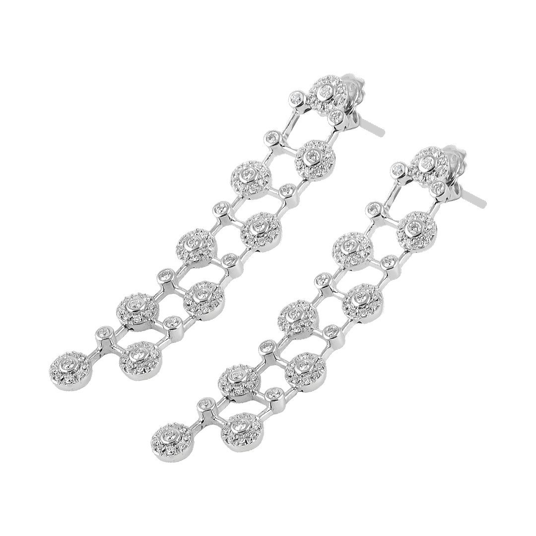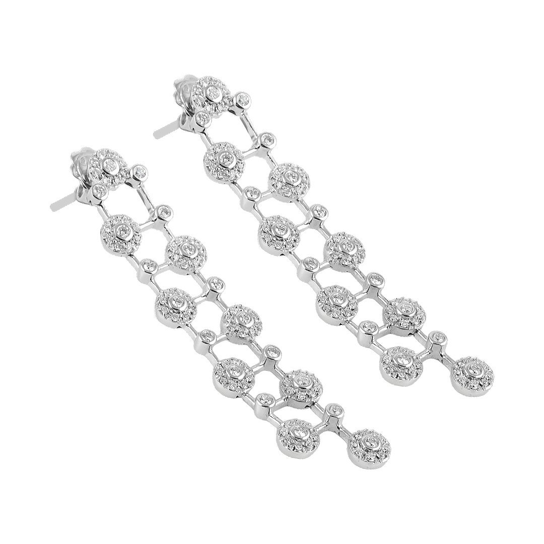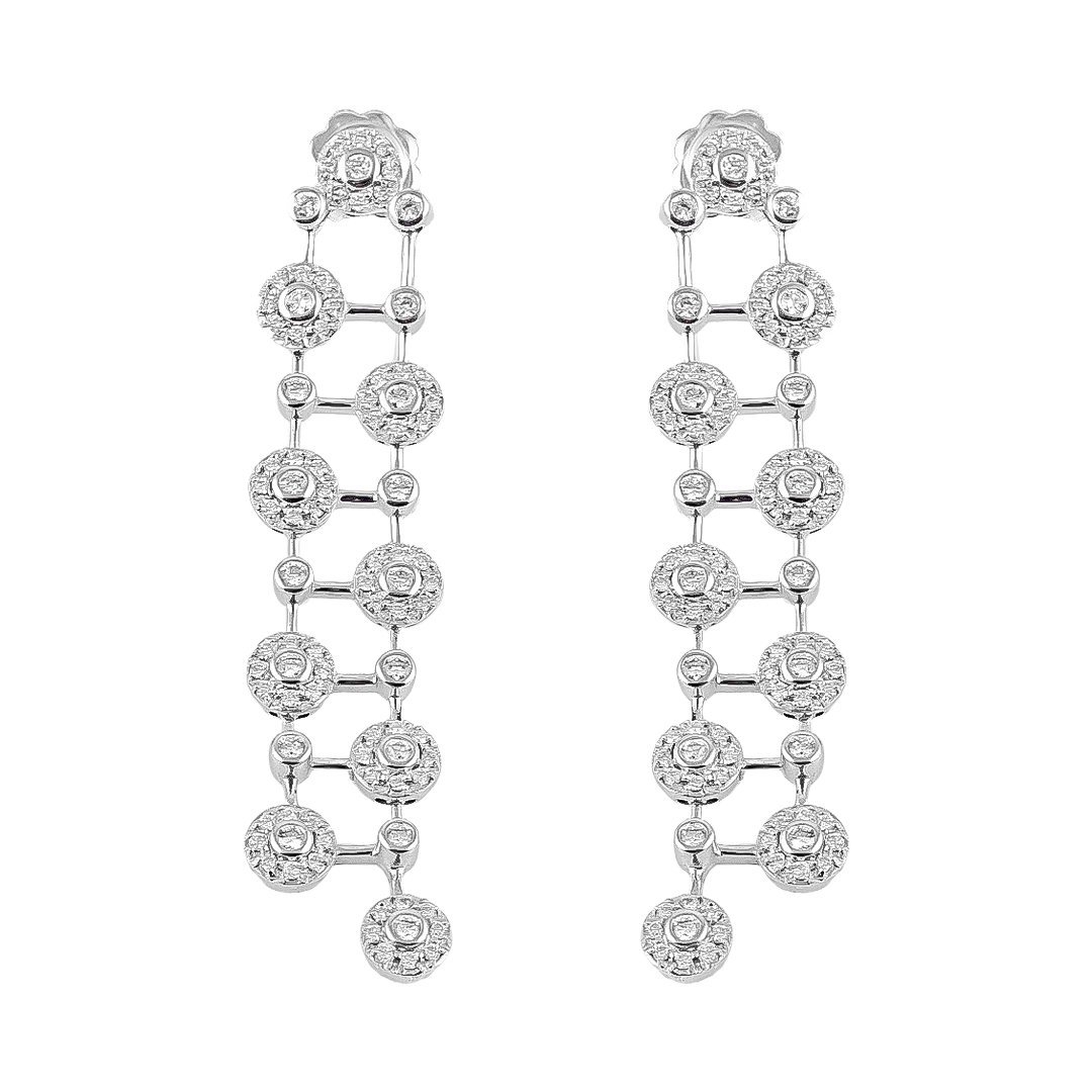 These exquisite 18K White Gold Diamond Earrings are a testament to refined elegance and superior craftsmanship. Each earring features 182 round brilliant diamonds, totaling 1.41 carats. The diamonds are meticulously selected for their VVS1/2 clarity and G/H color, ensuring exceptional brilliance and fire. The 18K white gold set provides a luxurious and durable foundation, enhancing the overall allure of the piece. These earrings are designed to be a timeless addition to any discerning jewelry collection.