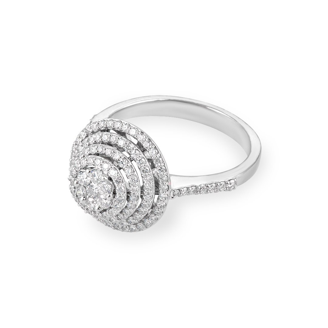 Crafted from 18k white gold, this diamond pavé ring is luminous and graceful. It weighs 1.90 grams, offering a light and comfortable fit. The polished gold surface enhances the radiance of the diamonds, giving the piece a clean, sophisticated look.