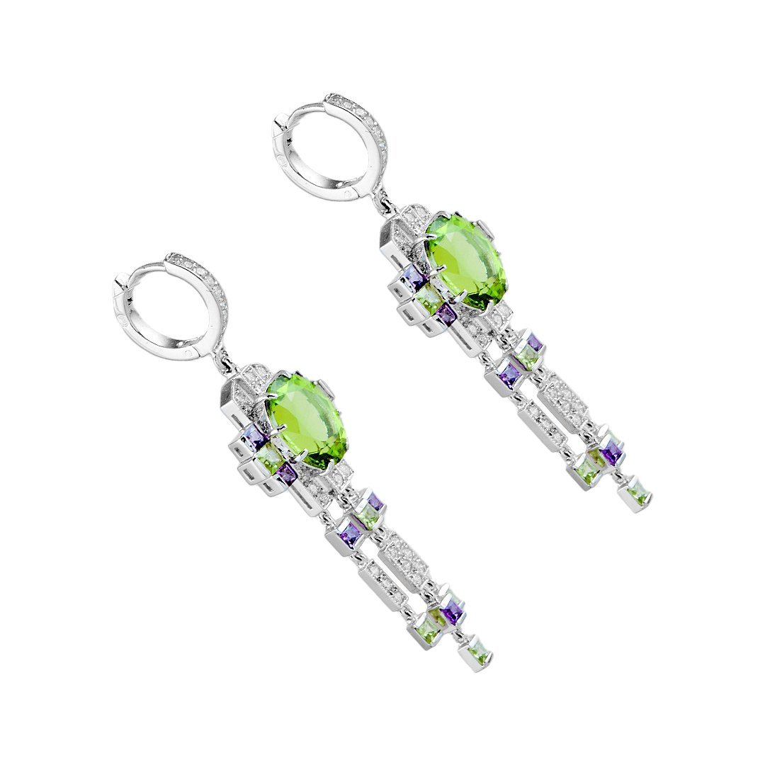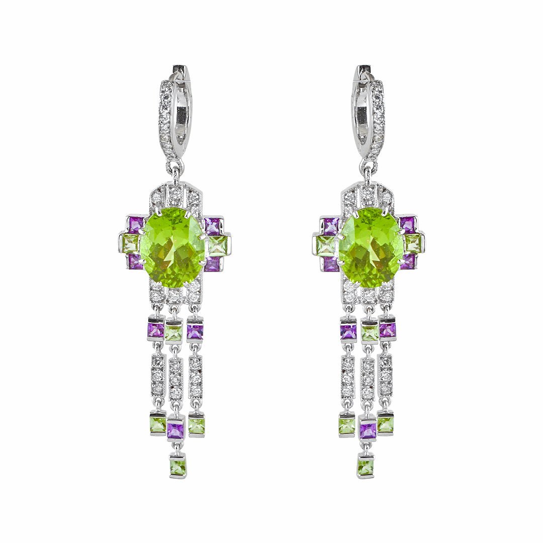 18K White Gold Diamond, Peridot, and Amethyst Earrings