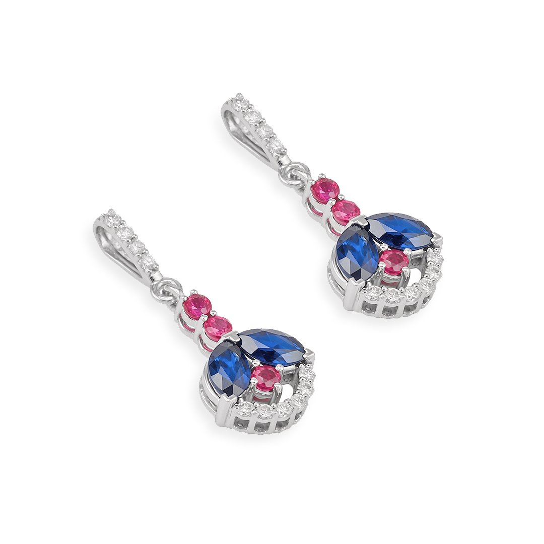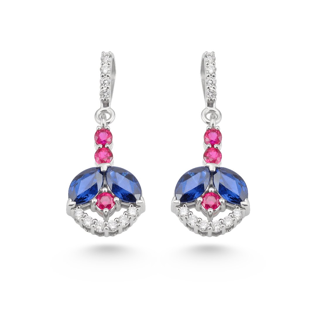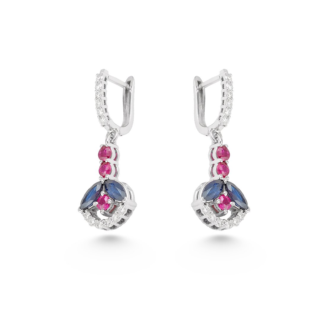 Elegant 18k White Gold Ruby, Sapphire and Diamond Earrings