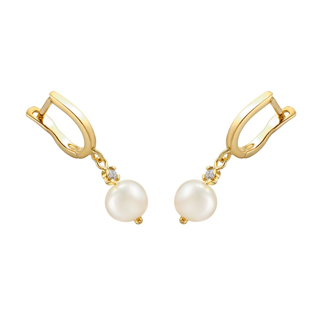 At the center of each earring, a round brilliant diamond weighing 0.11 carats captures attention. Graded VS2 in clarity and G in color, the stones provide refined brilliance. Moreover, the precise setting allows light to interact freely across the diamond facets. Therefore, sparkle appears vivid yet elegant. The diamonds complement the warm gold beautifully. As a result, they enhance the overall sophistication of the earrings. This subtle brilliance ensures the design feels delicate yet impactful. Consequently, the diamonds provide a timeless focal point that balances gracefully with the pearls and yellow gold foundation today.
