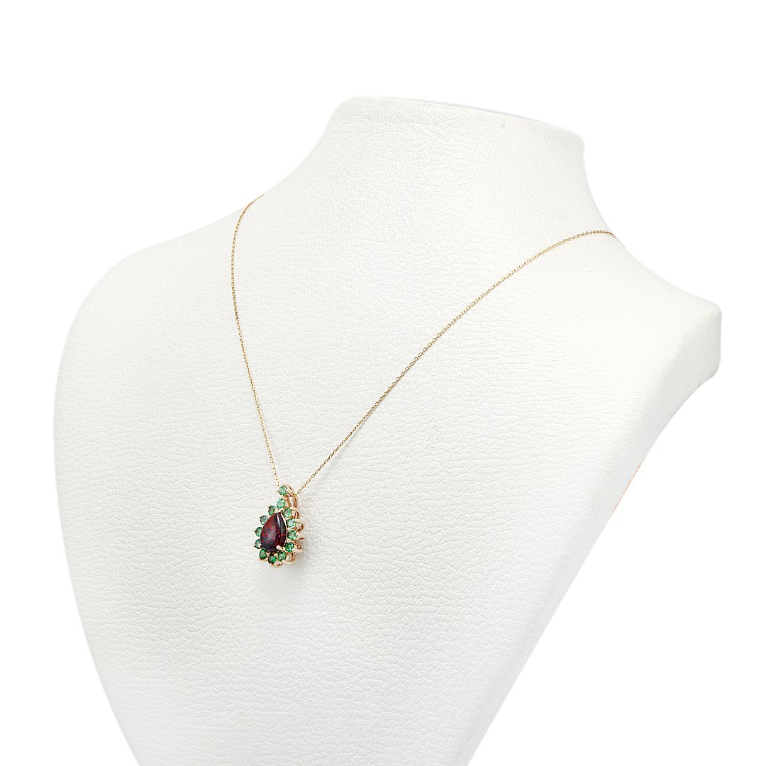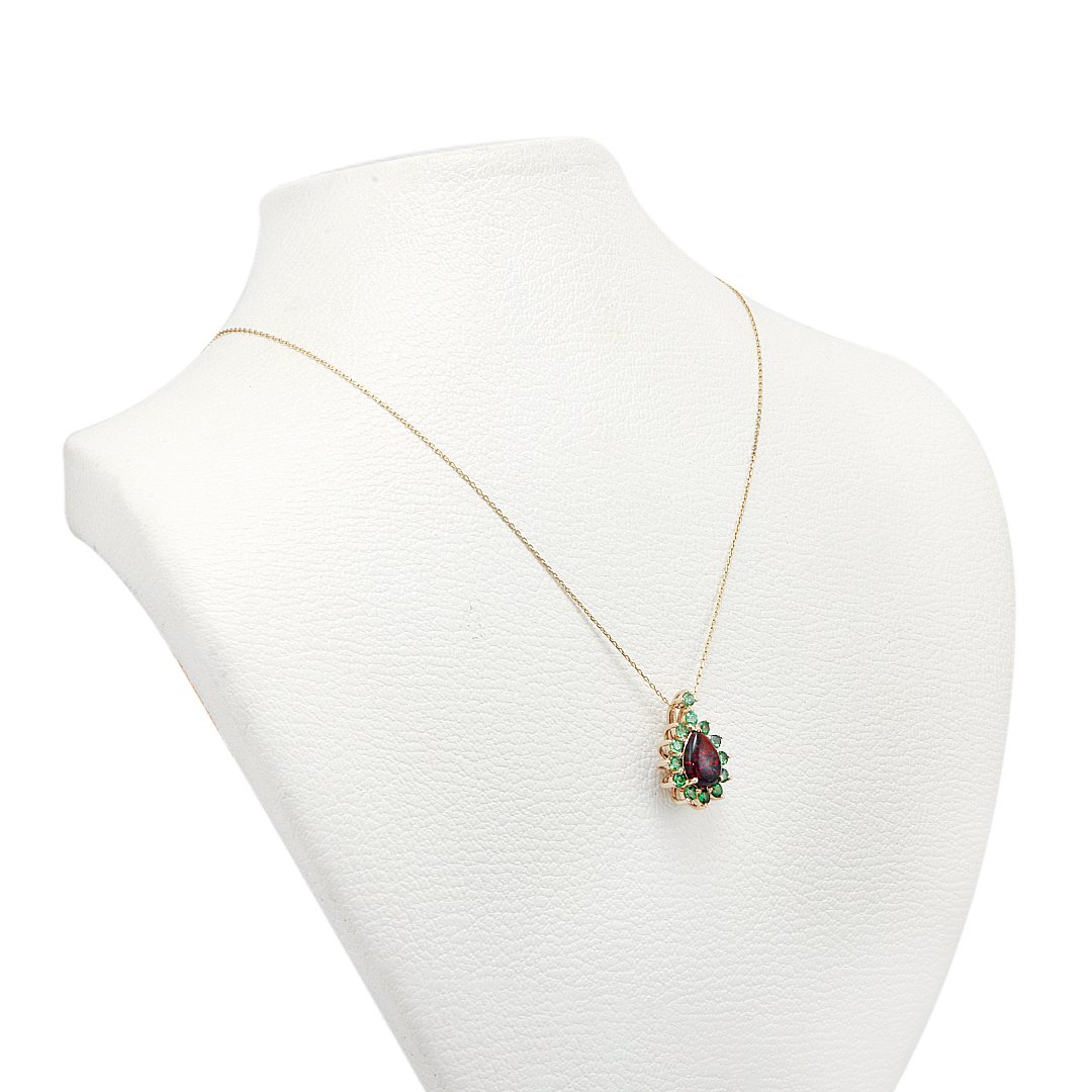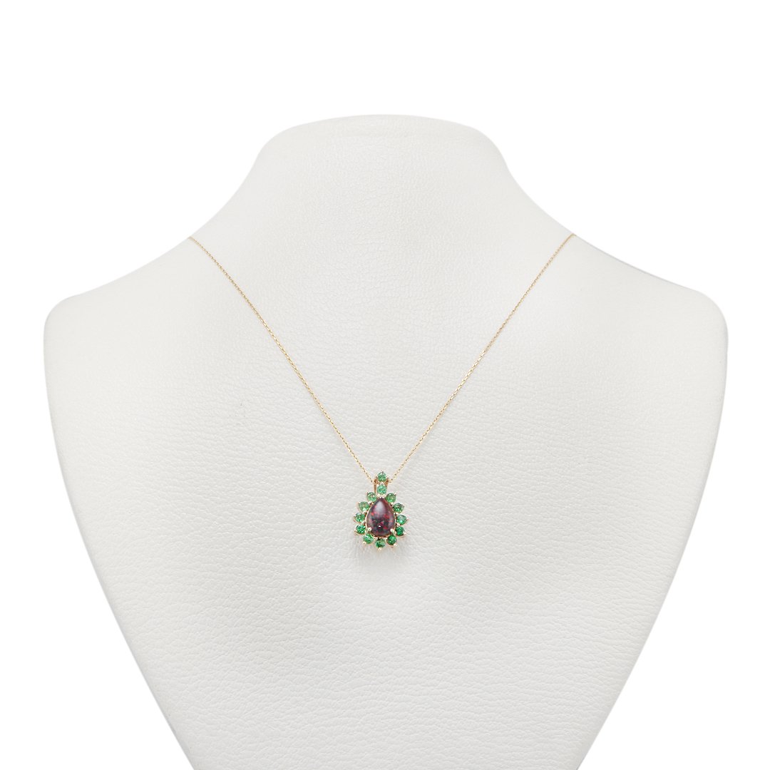 Surrounding the opal are thirteen natural tsavorites totaling 0.89 carats. Their vibrant green hue creates striking contrast against the opal’s glow. In addition, their precise arrangement brings structure and rhythm. Each stone contributes clarity and freshness. Therefore, the pendant maintains balance and visual harmony.
