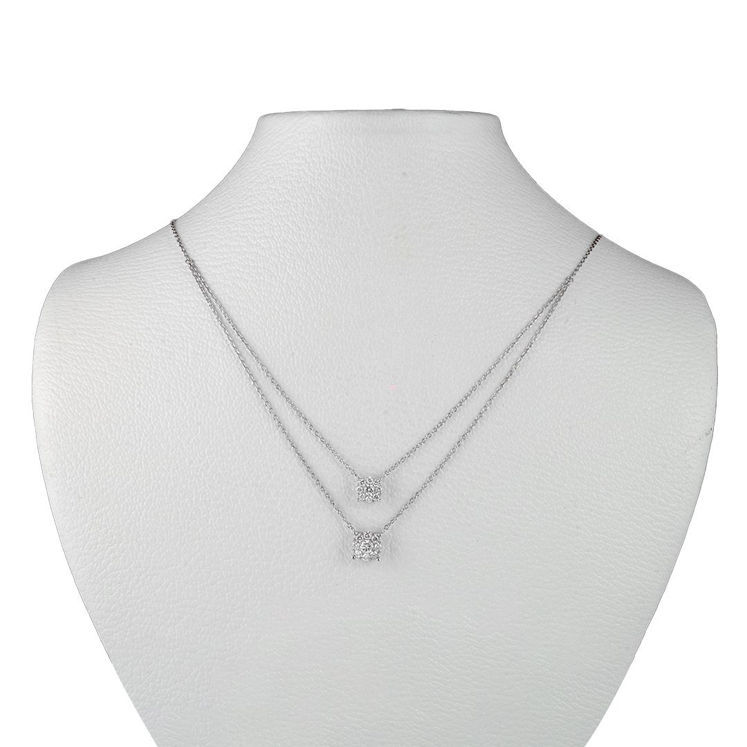 The Celeste Whisper Diamond Necklace is where modern elegance meets timeless radiance. Crafted in polished 18K white gold, it offers both sophistication and charm. At its center, two round brilliant diamonds—together weighing 0.199 carats—serve as the focal point. Surrounding them are sixteen additional diamonds, totaling 0.335 carats, arranged in a delicate formation that radiates grace. All diamonds feature VS1 clarity and G color, chosen for their brilliance and exceptional purity.