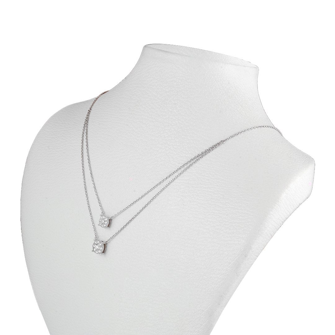 This necklace doesn’t just shine—it enhances. The careful arrangement of stones, combined with the cool gleam of white gold, results in a silhouette that’s both modern and refined. Moreover, the balance between the center and surrounding stones ensures that light catches from every angle. Whether worn alone or layered with other pieces, the celeste whisper diamond necklace adapts seamlessly to your style.