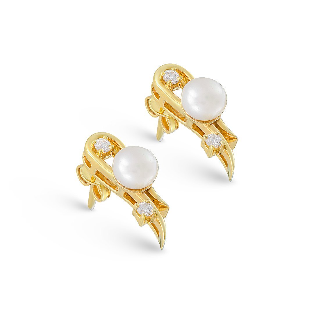 Weighing 4.25 grams, these earrings are lightweight yet durable, offering both comfort and style. Whether dressing up for a special event or adding a touch of elegance to a casual outfit, these 18k yellow gold earrings with freshwater pearls and diamonds are the perfect finishing touch. Their classic design ensures they remain a timeless piece in your jewelry collection, ideal for elevating any look.