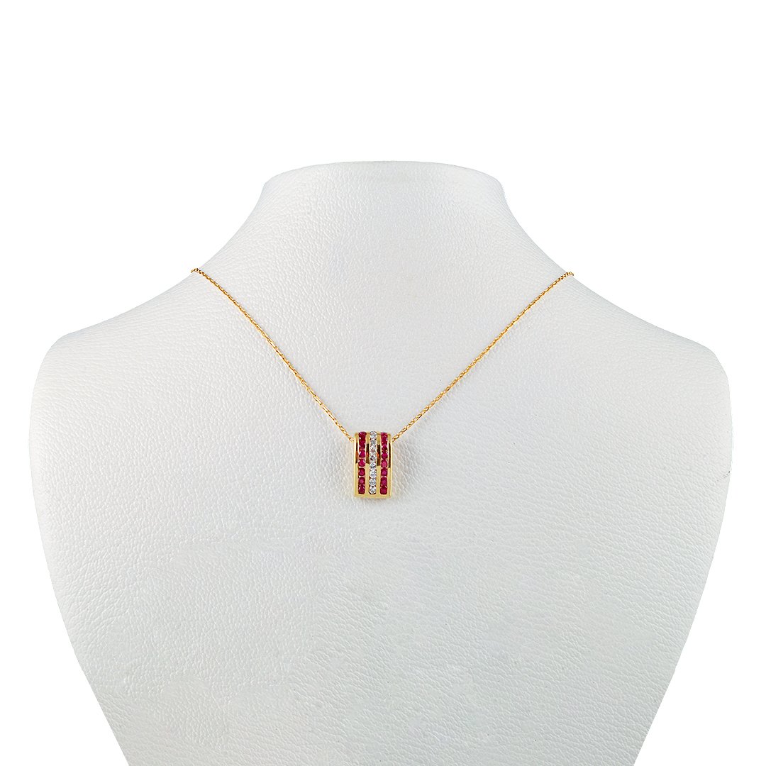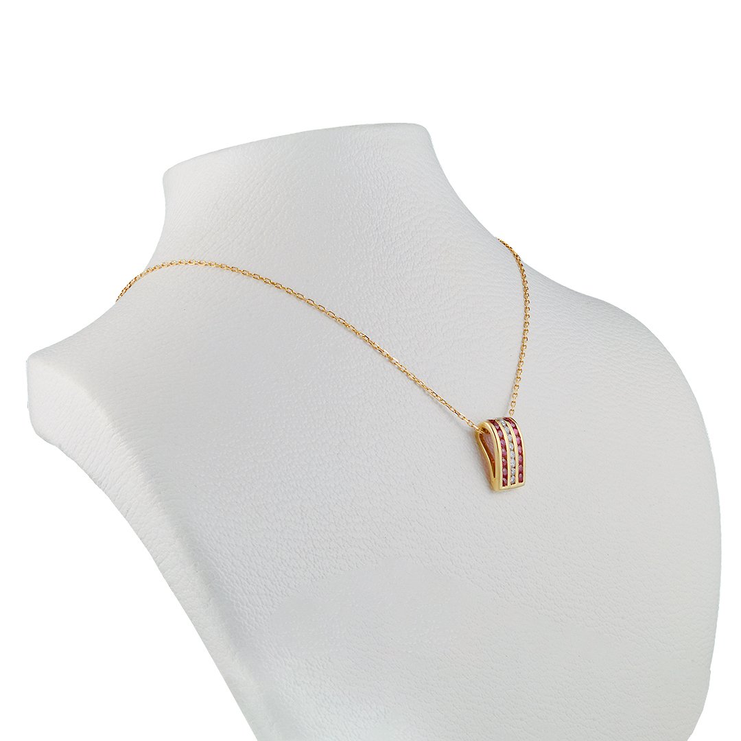 Crimson Radiance Pendant expresses elegance through rich color and precise craftsmanship. Crafted in 18k yellow gold, the pendant weighs 3.65 grams. Its structure feels balanced and confident. Moreover, the warm gold tone enhances every gemstone it holds. The design reflects timeless appeal and careful artistry.