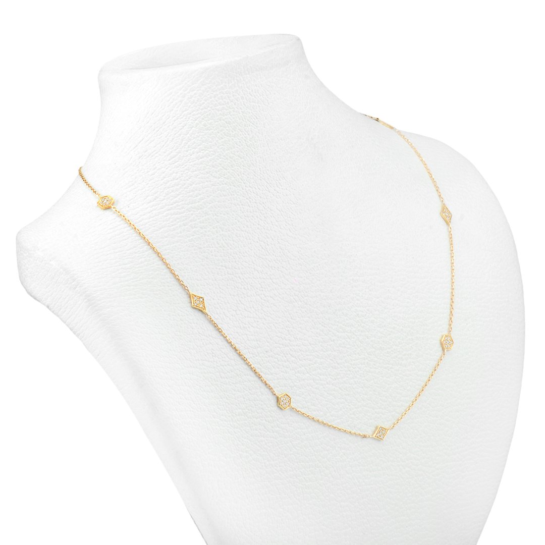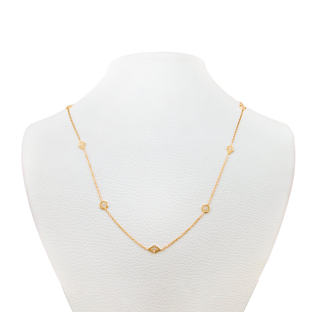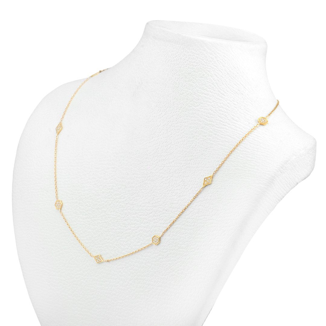 Designed for understated sophistication, this 18k yellow gold diamond necklace adapts effortlessly to every occasion. The secure setting protects each diamond while preserving light performance. Moreover, the refined silhouette resists fleeting trends. Therefore, the piece remains relevant across seasons and styles. Its delicate design complements layered looks as well as minimalist ensembles. As a result, it offers versatility without compromising elegance. The combination of expert craftsmanship and high-quality diamonds ensures enduring appeal. Consequently, this necklace delivers lasting beauty, graceful sparkle, and refined luxury for everyday wear and meaningful moments alike.