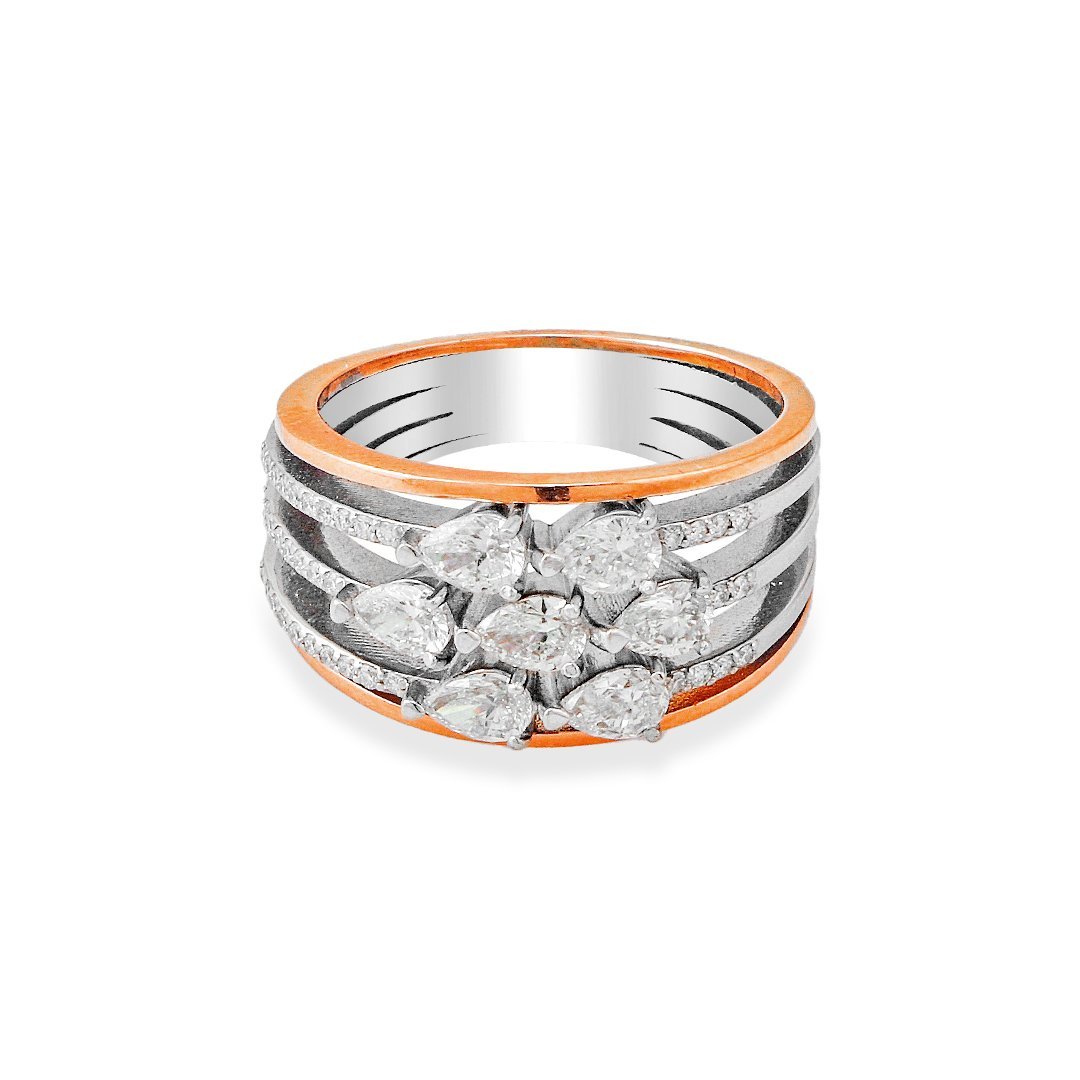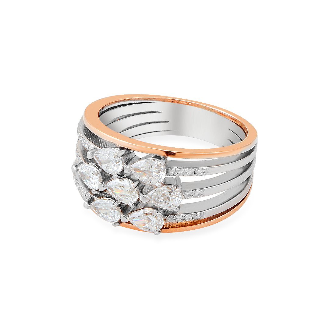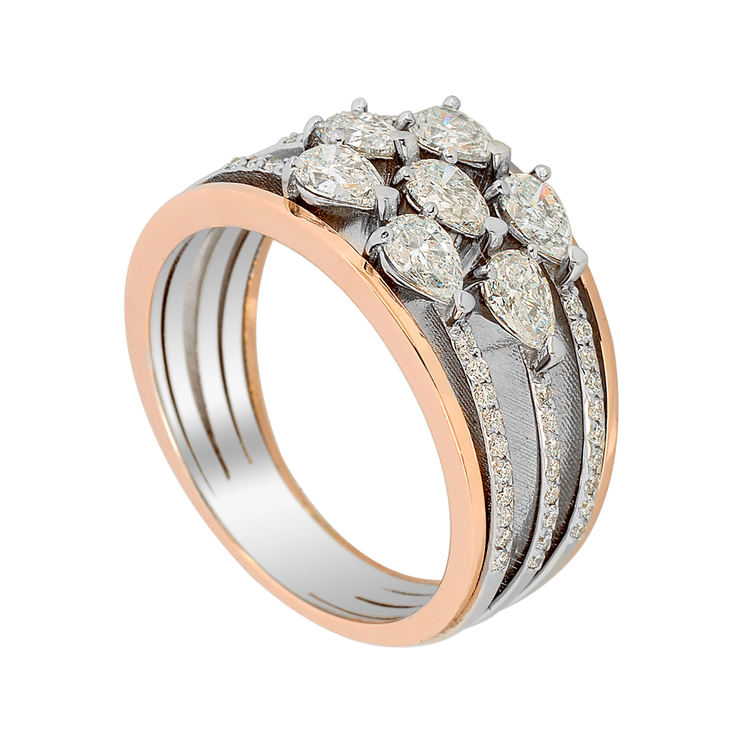 This 18k rose and white gold diamond ring blends warmth and radiance in perfect harmony. The dual-tone gold enhances its elegance, creating a striking contrast that draws attention. Designed for those who appreciate both modern sophistication and classic beauty, this ring offers timeless charm. Whether worn as a statement piece or a cherished keepsake, it radiates refinement and exceptional artistry.