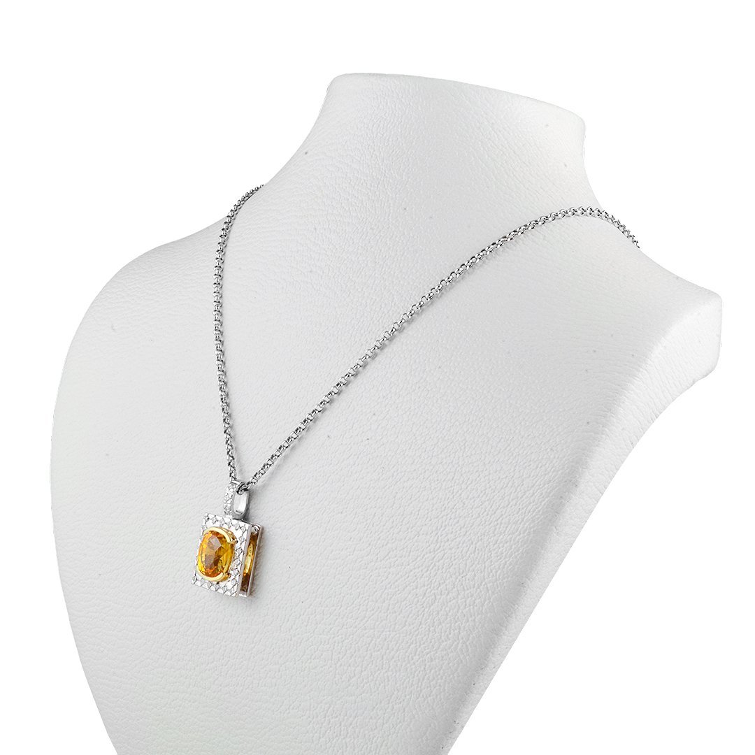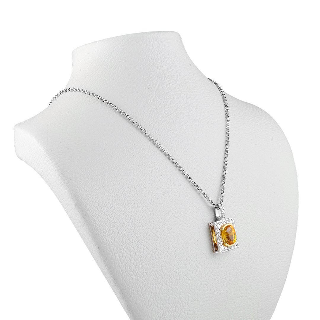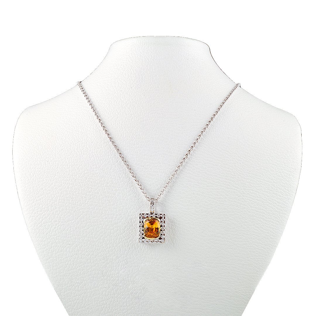 Elevate your elegance with the Elegant 18K Gold, Diamond, and Yellow Sapphire Pendant. This sophisticated piece combines the vivid brilliance of a 7.18-carat natural yellow sapphire with the sparkle of 25 round brilliant diamonds, totaling 0.53 carats. Set in a stunning blend of white and yellow 18K gold, the pendant exudes luxury and refinement.