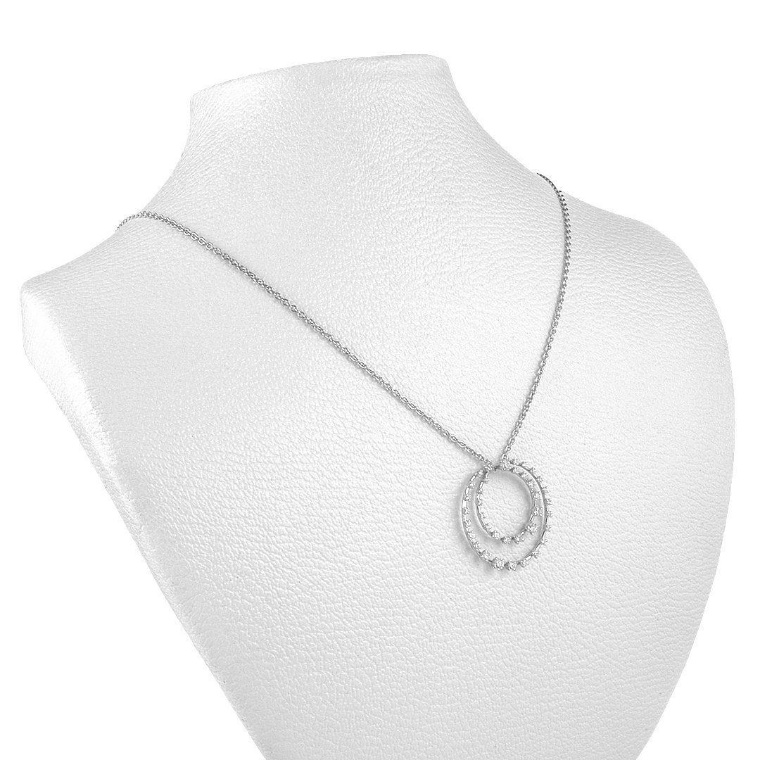 The necklace is crafted from 18k white gold. It weighs 5.45 grams for balanced wear. Moreover, the polished finish amplifies diamond brilliance. The sleek link chain drapes smoothly at the neckline. Precise settings secure each diamond firmly. Consequently, you enjoy both durability and refined style. Thus, the piece withstands daily wear and special occasions.