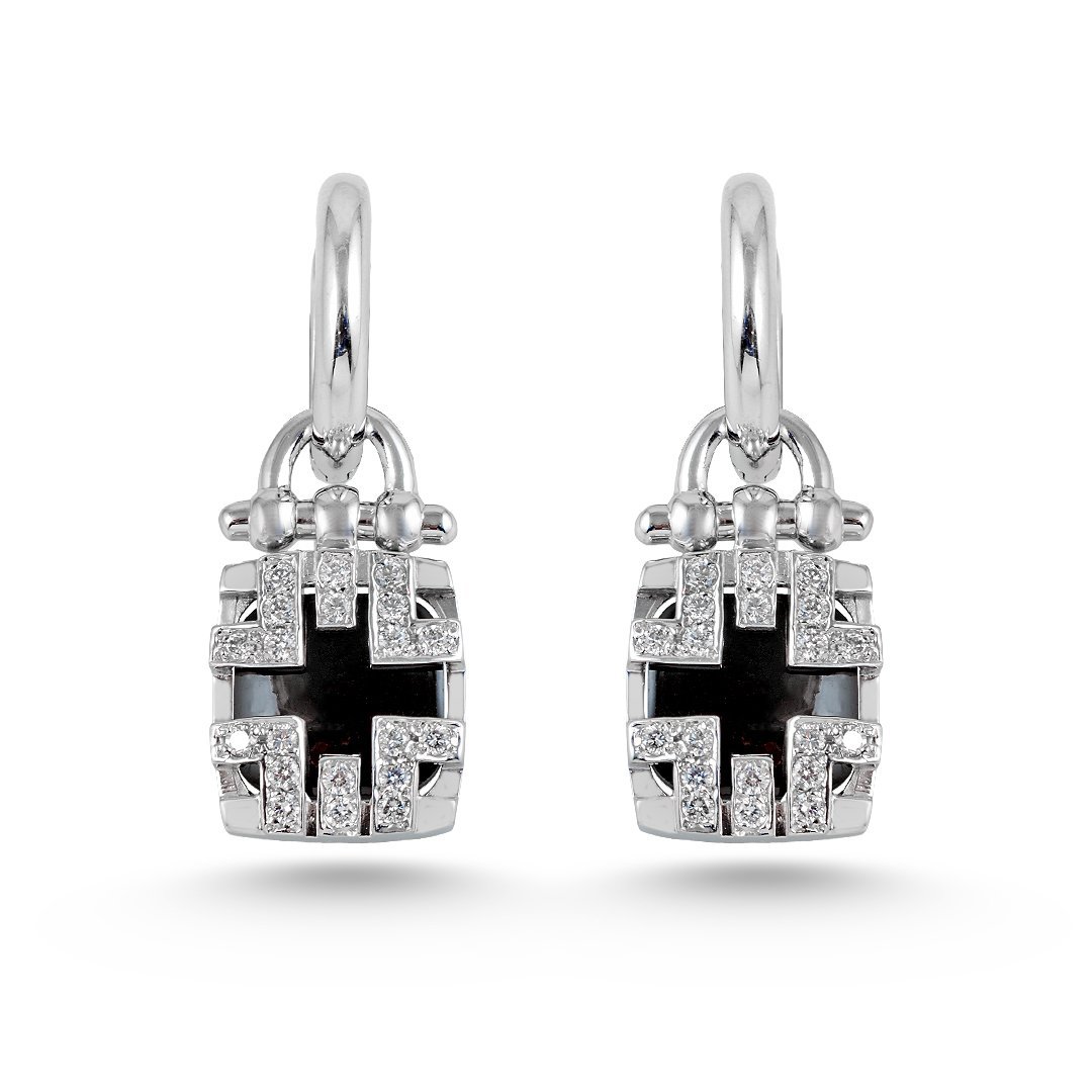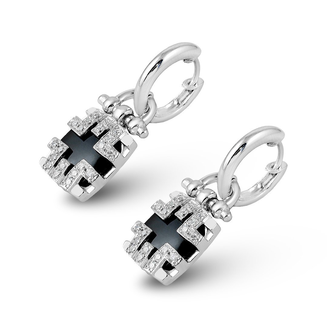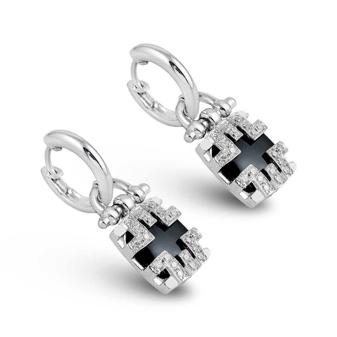 Elegant 18k White Gold Earrings with Diamonds and Onyx