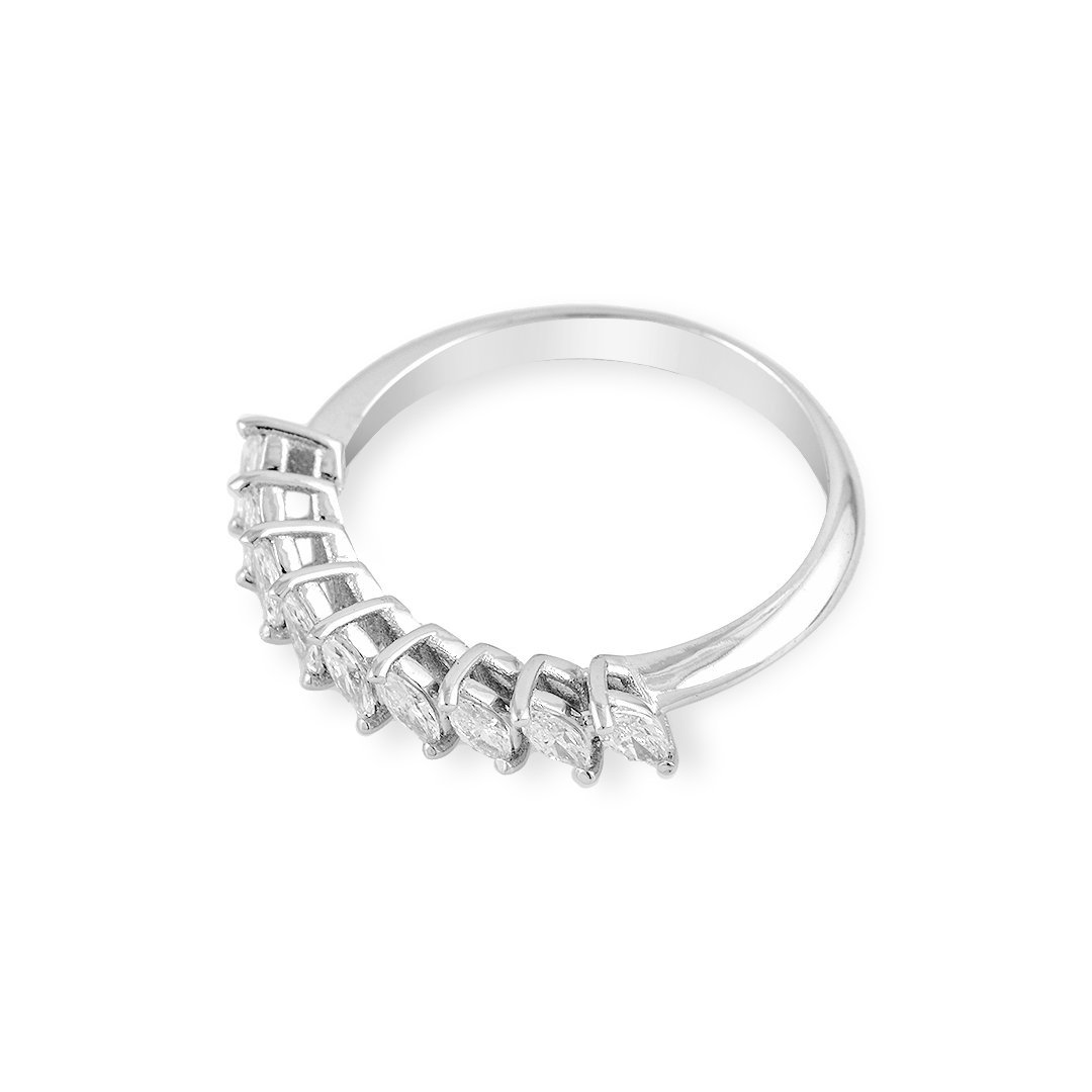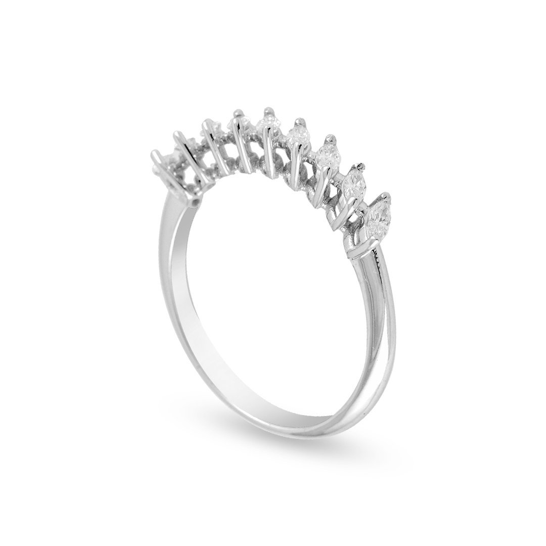 This 18k white gold diamond band embodies timeless beauty and sophistication. The band features nine marquise-cut diamonds, totaling 0.33 carats, each hand-selected for their exceptional clarity (VS1) and stunning G color. The diamonds are arranged in a delicate pattern, creating a continuous flow of light that sparkles with every movement. The smooth, polished finish of the band enhances the brilliance of the stones, creating a seamless and elegant look.