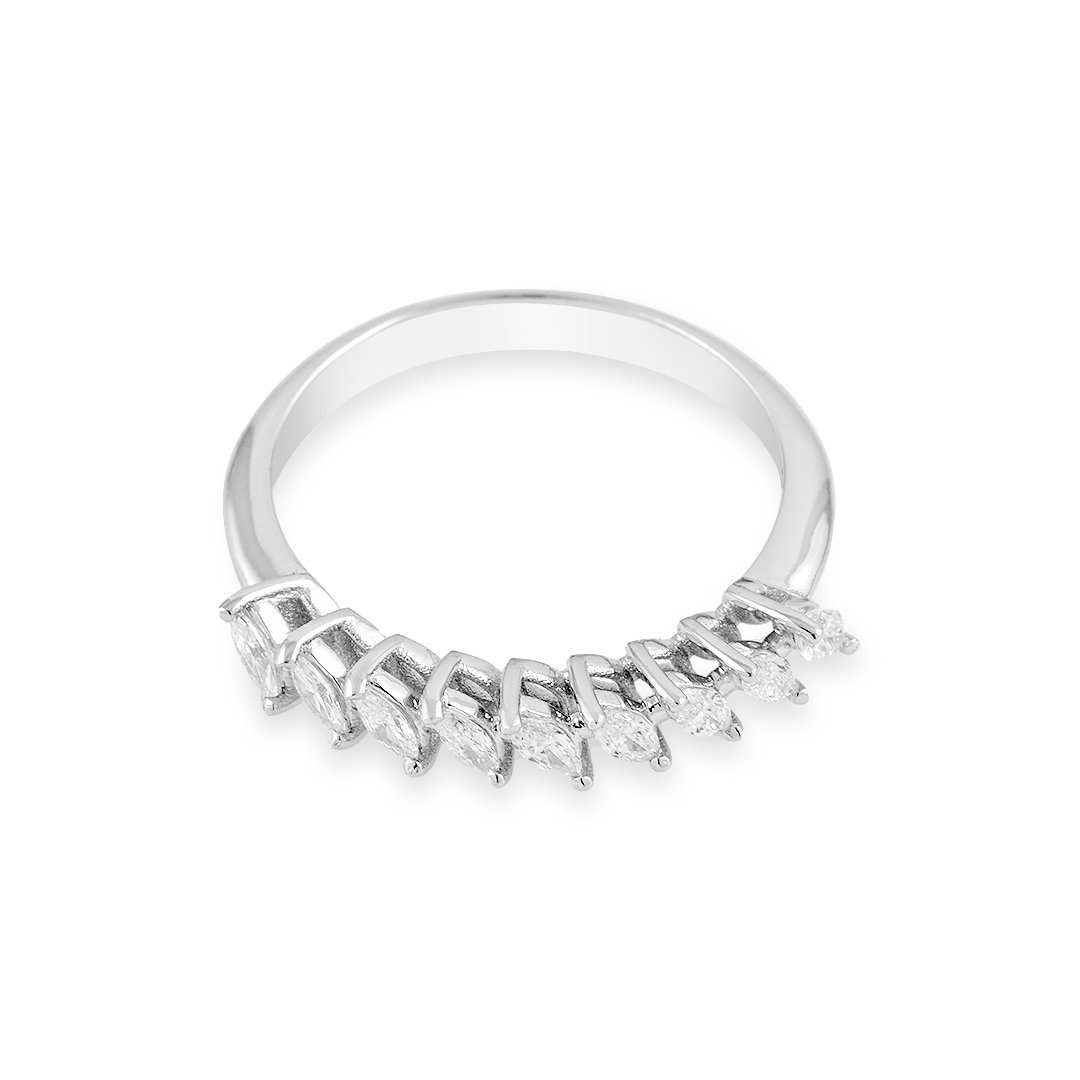 Each marquise diamond is chosen for its superior quality. With VS1 clarity and G color, these 18k white gold diamond band reflect a perfect balance of brilliance and fire. The marquise cuts add an elongated, graceful shape, enhancing the band’s radiance. The arrangement of the diamonds ensures that light passes effortlessly through each stone, giving the piece an exquisite sparkle from every angle.