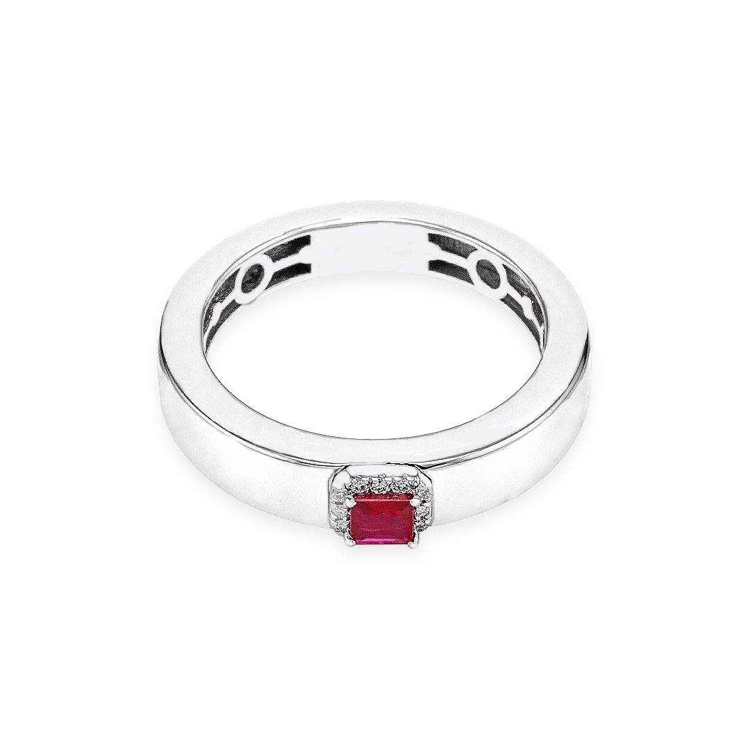 This gold diamond and ruby ring is crafted in luminous 18k white gold. The metal offers a clean and elegant foundation. With a gold weight of 3.15 grams, the ring feels light yet confident. Moreover, the proportions create comfort without sacrificing presence. As a result, the design suits daily wear with ease.
