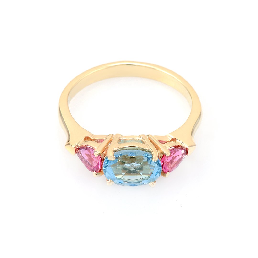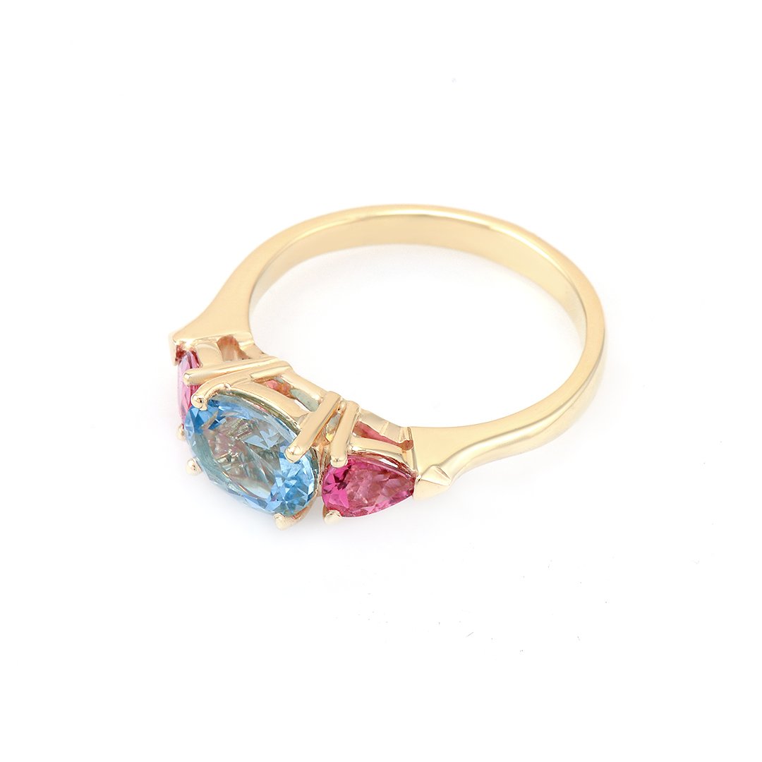 Lagoon Poise 18k Yellow Gold Aquamarine & Tourmaline Ring