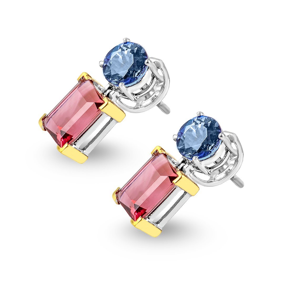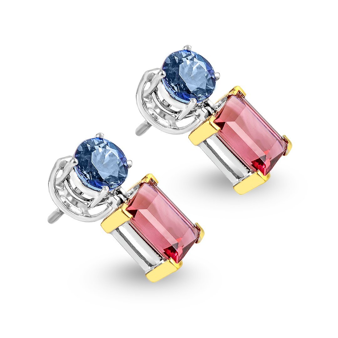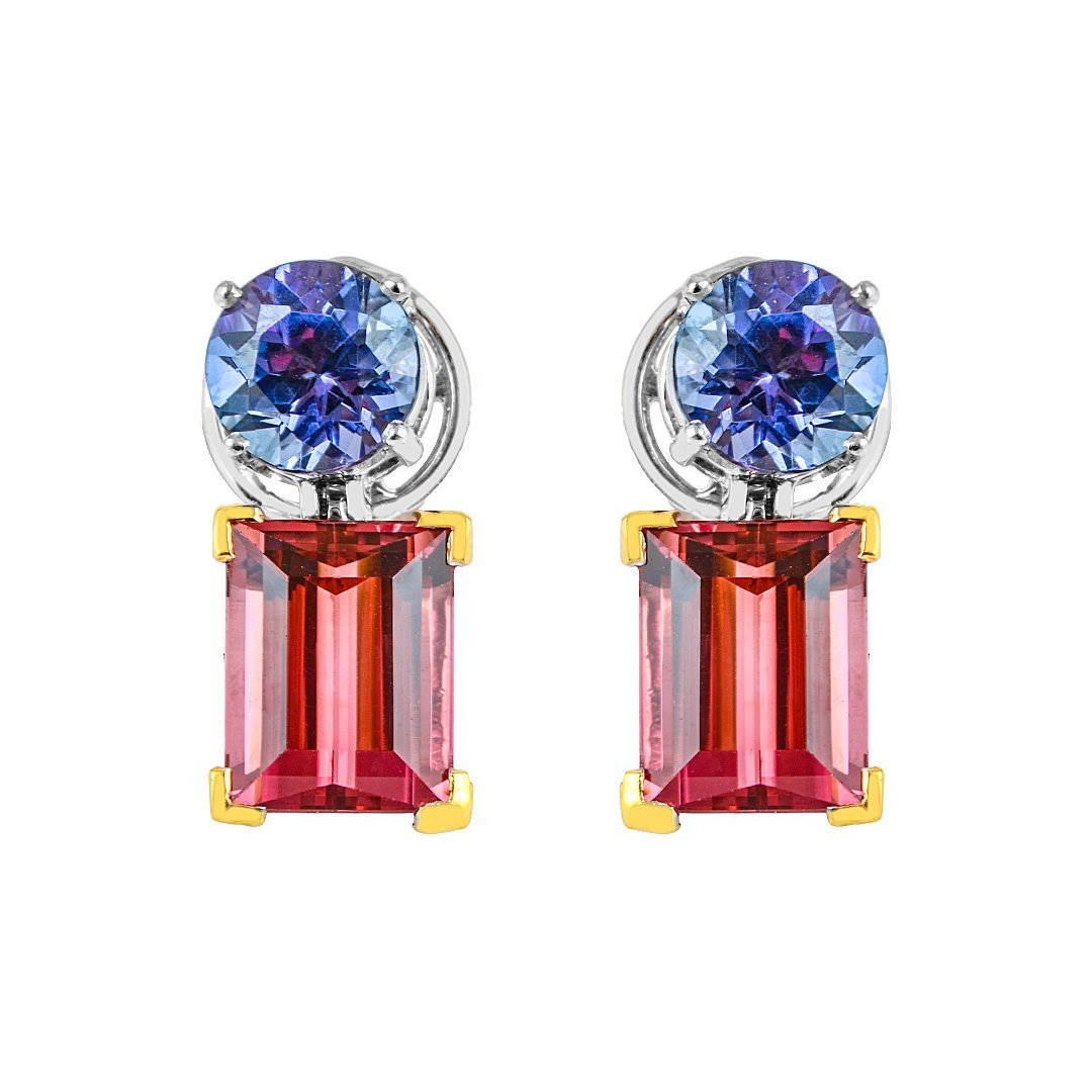 Lumina White & Yellow Gold Tanzanite and Tourmaline Earrings