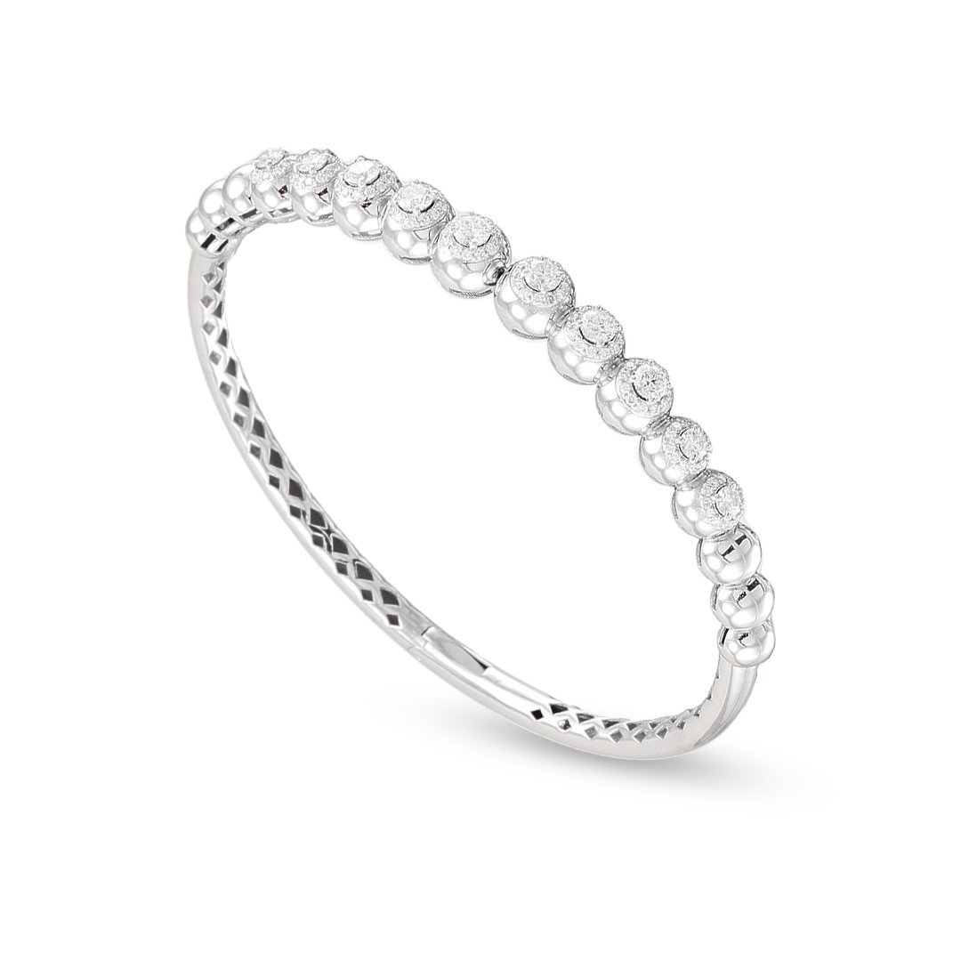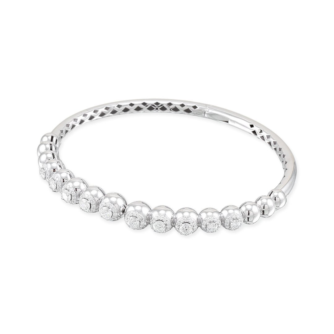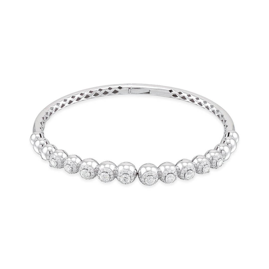 This radiant white gold diamond bracelet is a luxurious expression of refined craftsmanship. Created in lustrous 18k white gold and weighing 12.10 grams, it balances visual impact with graceful wearability. The bracelet’s smooth, polished finish complements its intricate diamond detailing, resulting in an unmistakably elegant design.
