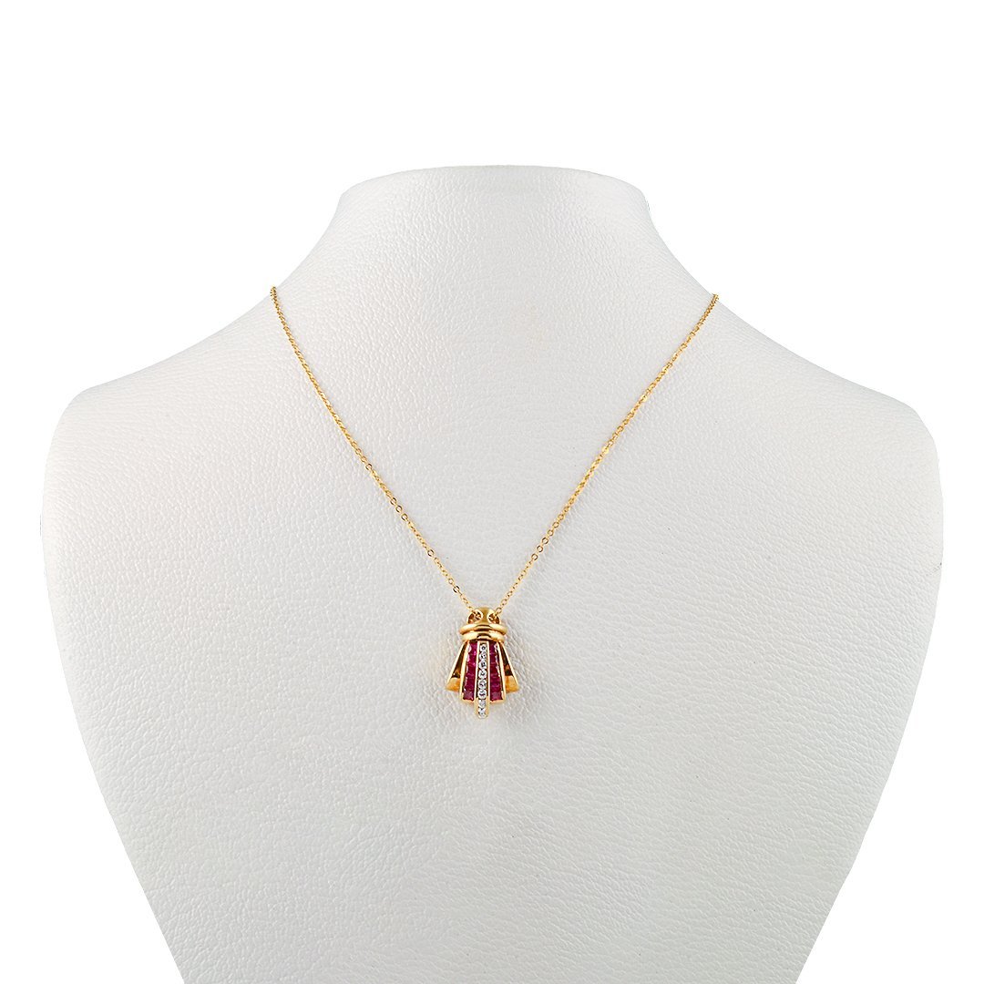 This pendant flawlessly blends vibrant rubies and radiant diamonds with a warm, golden setting. The 10 natural rubies, chosen for their deep and vivid color, sit gracefully within the polished 18K yellow gold. Meanwhile, the 8 round brilliant diamonds add a sparkling contrast that elevates the pendant’s overall elegance. As you admire the design, you’ll notice how every element works together to create an extraordinary harmony of color and light. Furthermore, the sleek and timeless style ensures this piece complements any outfit, making it perfect for special occasions or everyday wear.