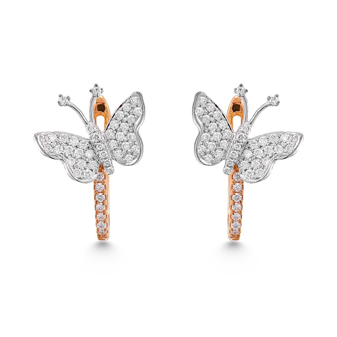 These two-tone diamond earrings are ideal for those who seek elegance with understated radiance. Their sophisticated design makes them perfect for both everyday wear and special occasions. The refined contrast between the white and rose gold, coupled with the diamonds’ brilliance, results in a piece that’s both timeless and versatile. Elegant and modern, they are a standout addition to any fine jewelry collection.