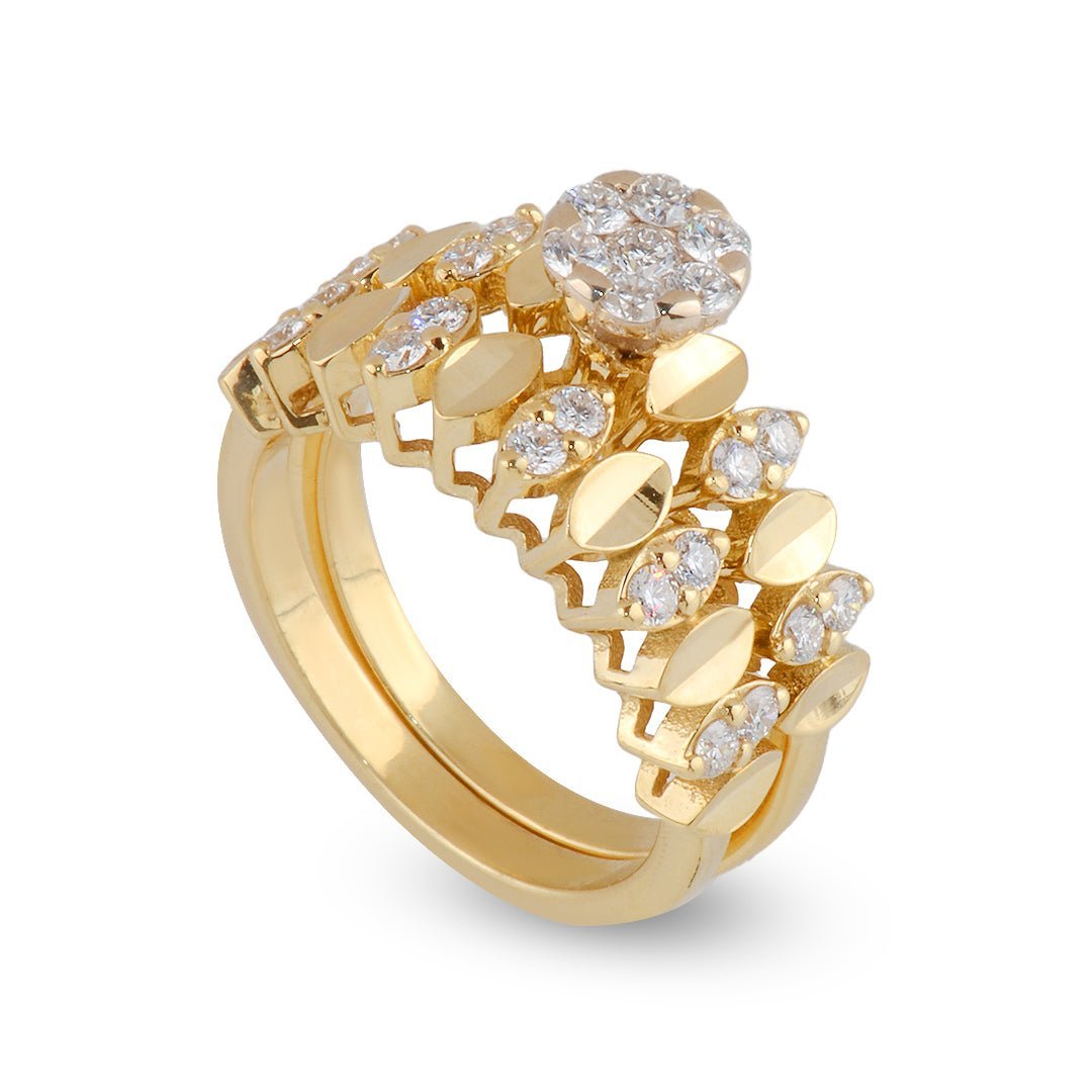 Whether you’re celebrating an engagement, anniversary, or other special moments, this set is the ideal choice. Its exquisite design and quality craftsmanship make it a timeless addition to any jewelry collection. The combination of white and yellow gold adds versatility, allowing it to complement various styles of other jewelry, making it suitable for both formal and casual occasions.