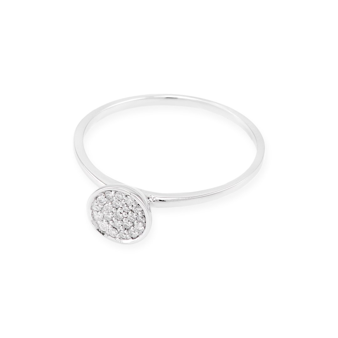 This white gold diamond ring captures the essence of minimal sophistication. Crafted in 18k white gold, the ring features a slender, polished silhouette. At its heart, a single round brilliant diamond weighs 0.09 carats. Graded VS1 in clarity and G in color, the center stone delivers quiet brilliance with a refined presence. Its simplicity enhances the overall grace of the design.