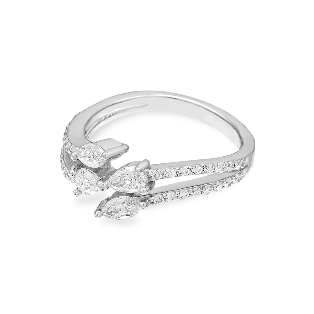 Ideal for those who value understated individuality, this white gold ring offers emotional depth through design. It marks quiet milestones and cherished moments with elegance. Its refined style allows it to stand alone or complement other fine pieces. With its soft sparkle and organic composition, it becomes a personal symbol of grace. Whether gifted or self-chosen, this ring embodies beauty with lasting meaning.